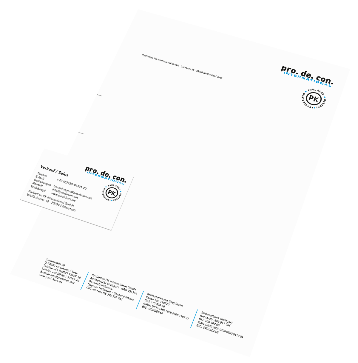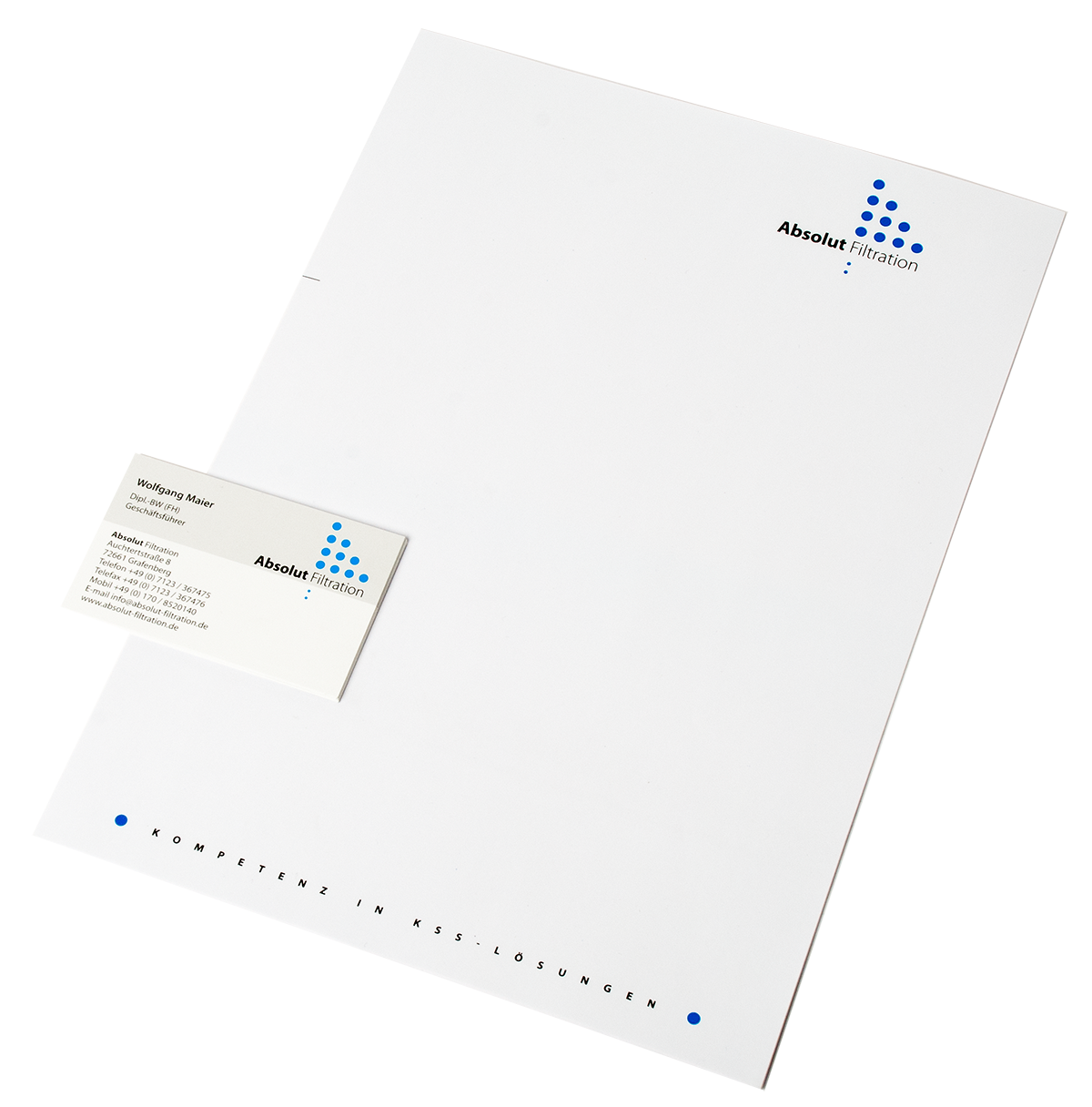 Notwendig im Geschäftsleben: Briefbogen mit den rechtlichen Angaben, Visitenkarte und Firmenstempel.